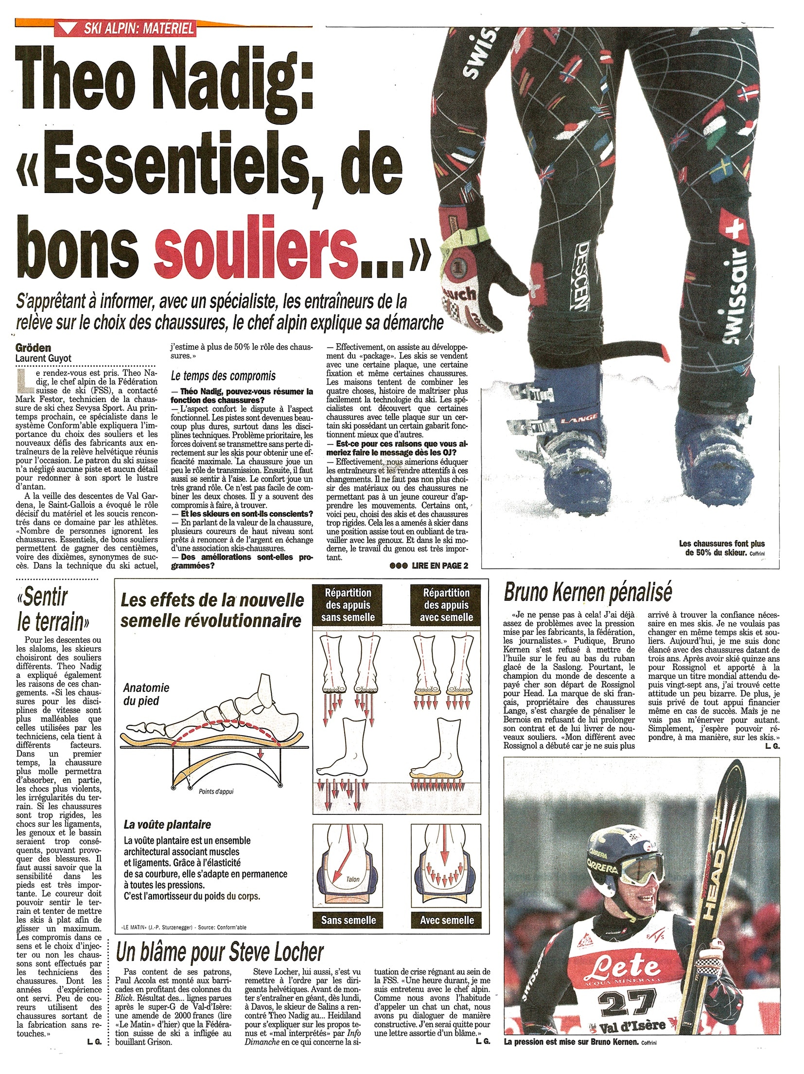 Article paru dans la revue de l’association française des entraîneurs de ski alpins en 2009 sur l’importance de la chaussure de ski chez les jeunes coureurs , son incidence durant la saison. Présentation des servives et forfait mis en place. ( interview de Jacques BESSE)
